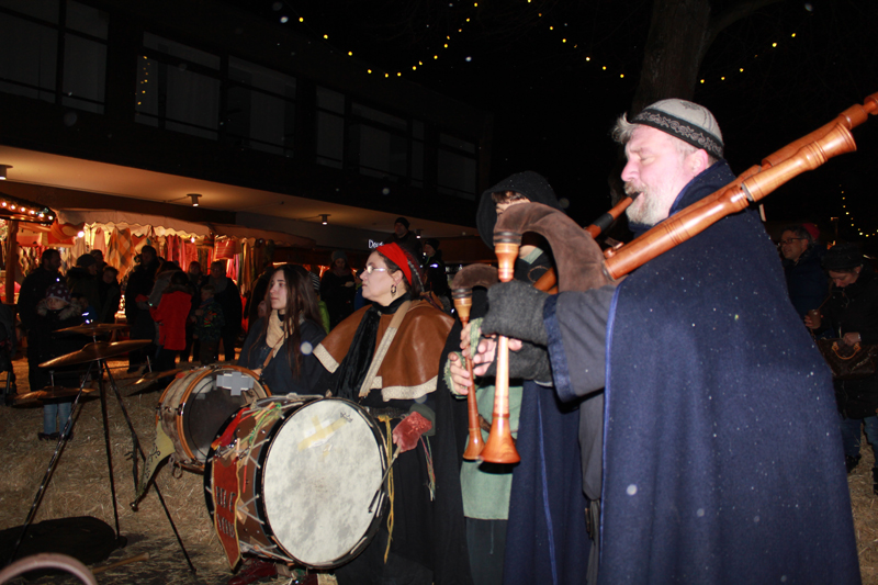 Altertümliche Musik auf dem Weihnachtsmarkt zieht kleine und große Besucher in den Bann