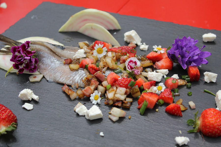 Verblüffend lecker und bunt ist ein Matjessalat, der in gemeinsamer Aktion "Koch und Wochenmarktbesucher" entstanden ist.